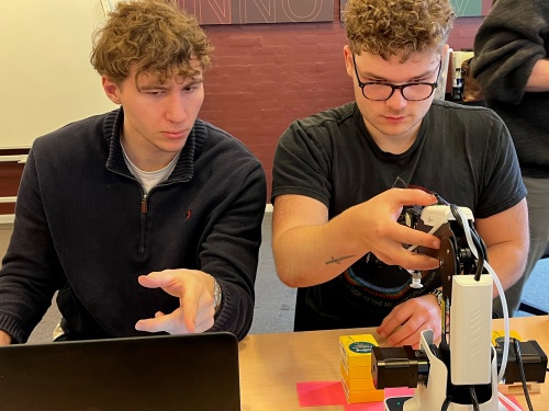 Samtidig var Tech- og Uni-linjen på besøg hos Erhvervsakademi Dania. Først blev der programmeret spil, som en datamatiker ville have gjort. Derefter prøvede eleverne kræfter med automationsteknologi, hvor der skulle styres robotarme, der stablede kasser, og en produktionslinje med samlebånd.